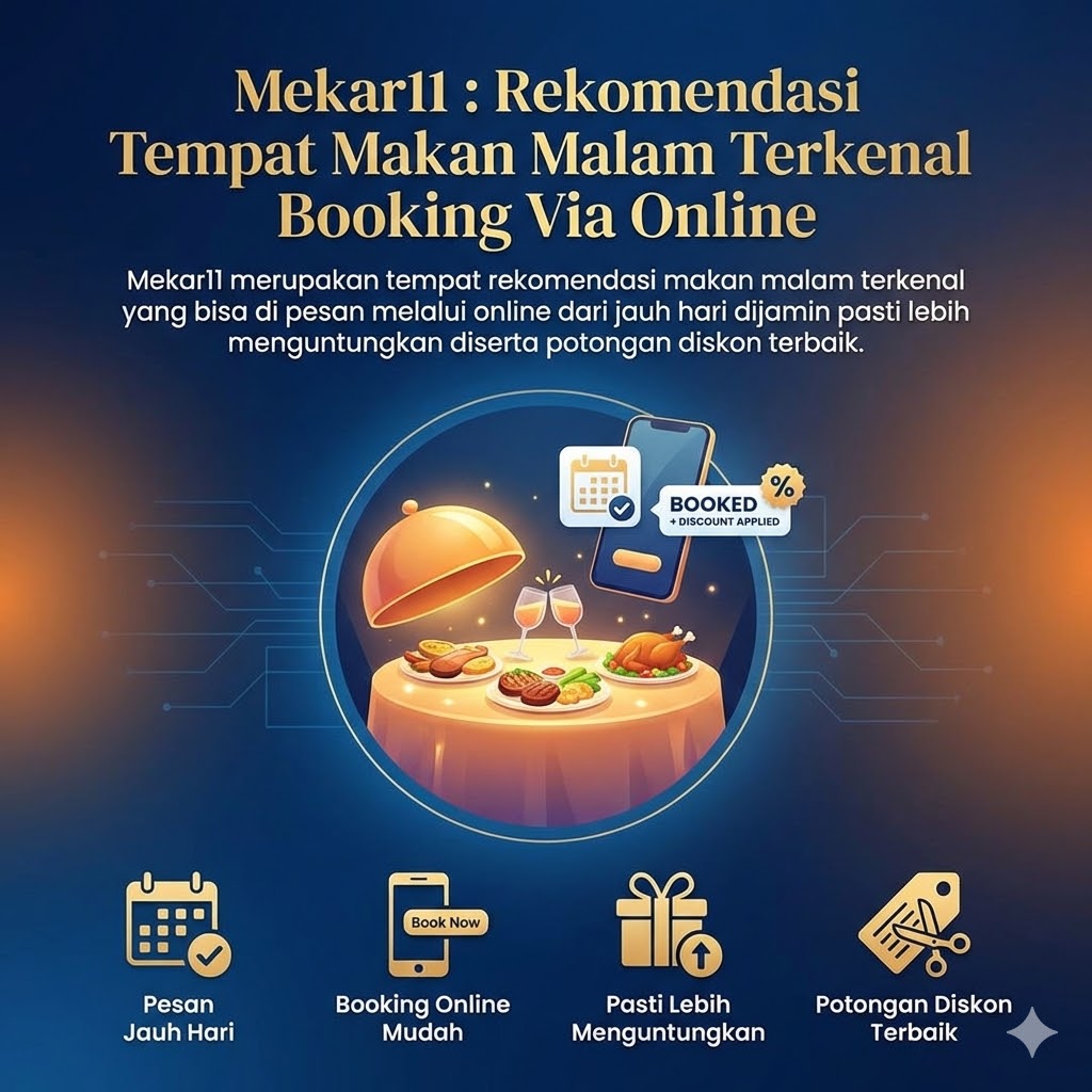 MEKAR11 merupakan tempat rekomendasi makan malam terkenal yang bisa di pesan melalui online dari jauh hari dijamin pasti lebih menguntungkan diserta potongan diskon terbaik..